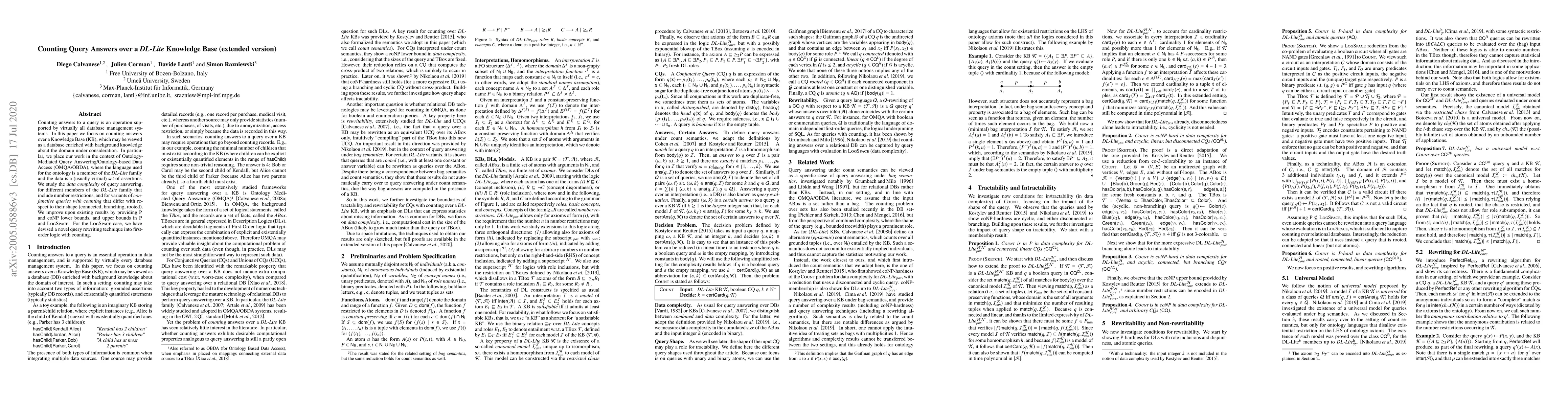 This paper investigates the complexity of counting query answers over a DL-Lite knowledge base in the context of Ontology-Mediated Query Answering, providing PTIME and coNP lower bounds, as well as PTIME and LOGSPACE upper bounds, and introducing a new query rewriting technique for counting.
