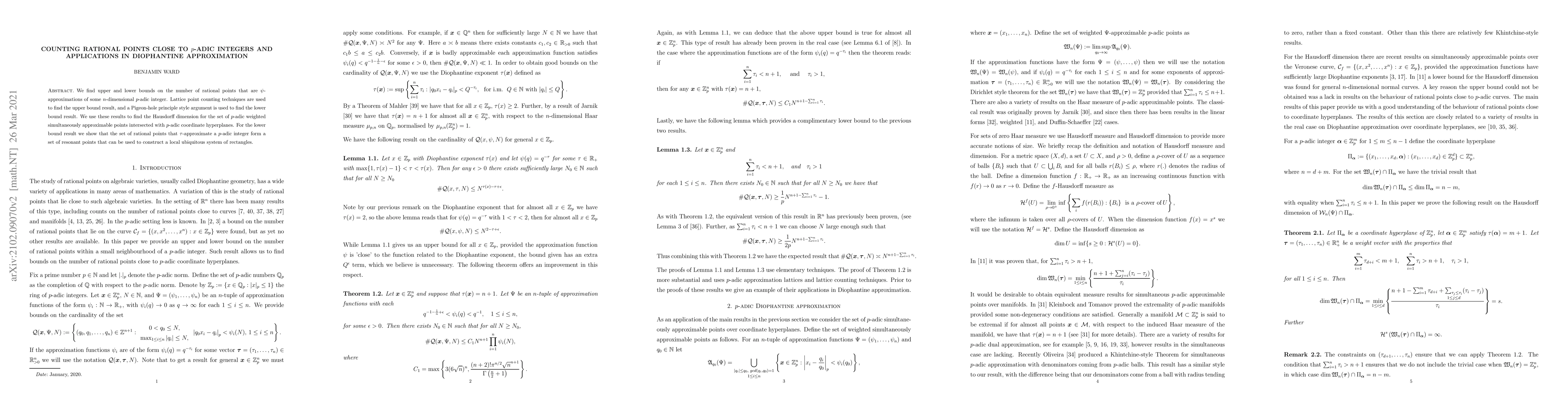 We find upper and lower bounds on the number of rational points that are $\psi$-approximations of some $n$-dimensional $p$-adic integer. Lattice point counting techniques are used to find the upper bound result, and a Pigeon-hole principle style argument is used to find the lower bound result. We use these results to find the Hausdorff dimension for the set of $p$-adic weighted simultaneously approximable points intersected with $p$-adic coordinate hyperplanes. For the lower bound result we show that the set of rational points that $\tau$-approximate a $p$-adic integer form a set of resonant points that can be used to construct a local ubiquitous system of rectangles.