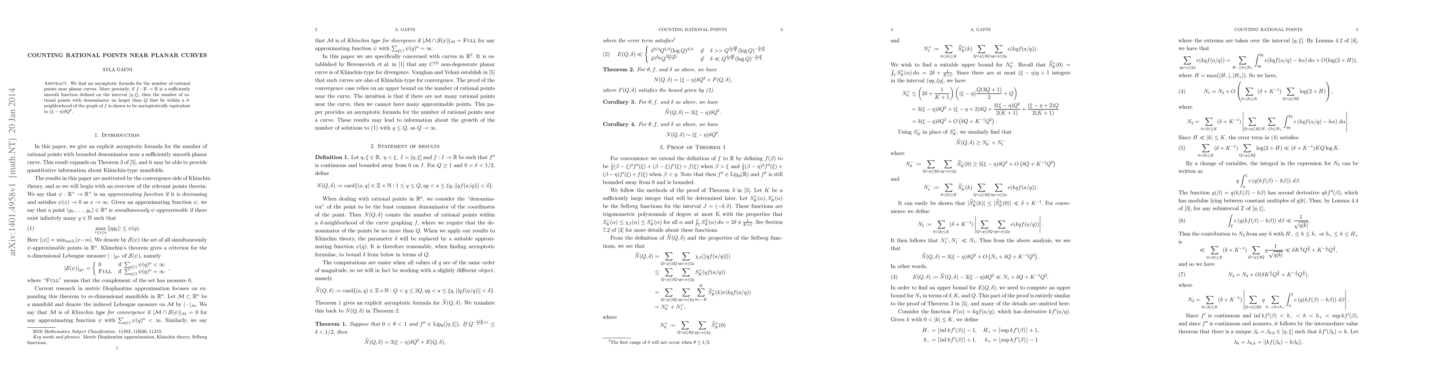 This paper provides an asymptotic formula for the number of rational points near planar curves, showing that the count of such points within a $\delta$-neighborhood of the graph of a sufficiently smooth function $f$ on $[\eta,\xi]$ is asymptotically $(\xi-\eta)\delta Q^2$.