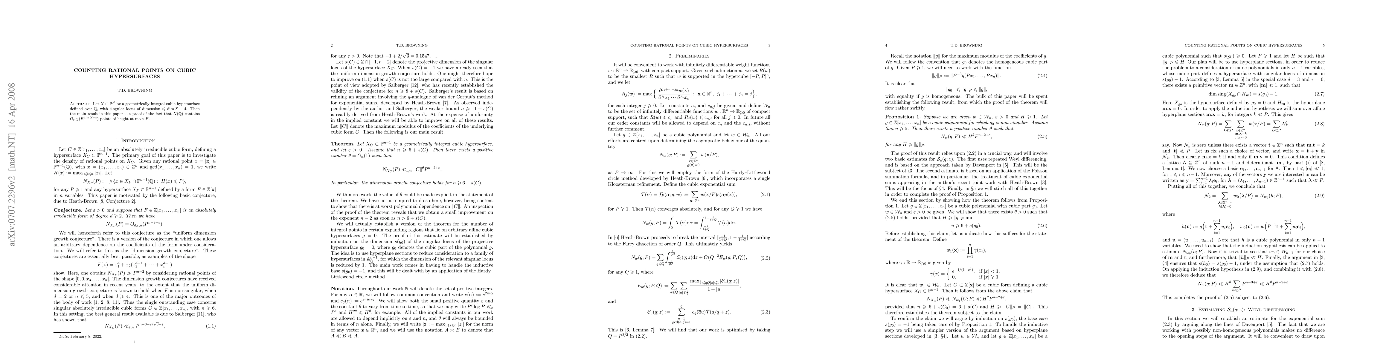 This paper demonstrates that a geometrically integral projective cubic hypersurface over the rationals contains O(B^{D+ε}) rational points of height at most B for any ε > 0, with the implied constant depending on ε and the defining coefficients.
