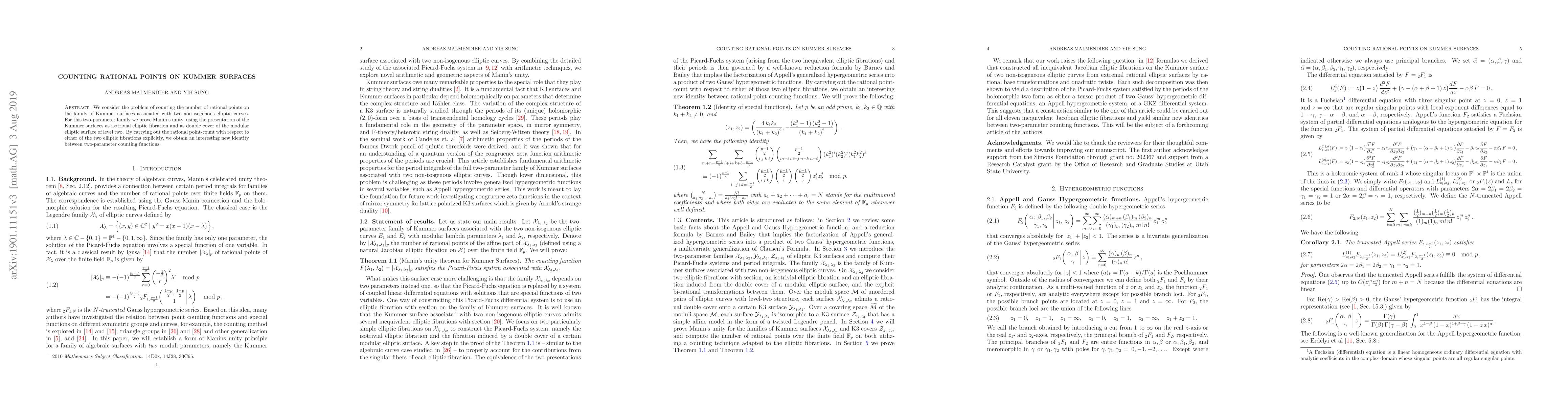 This paper counts rational points on Kummer surfaces linked to two non-isogenous elliptic curves, proving Manin's unity through their isotrivial fibration and double cover structure. The authors derive a novel identity between two-parameter counting functions via explicit rational point-counting.