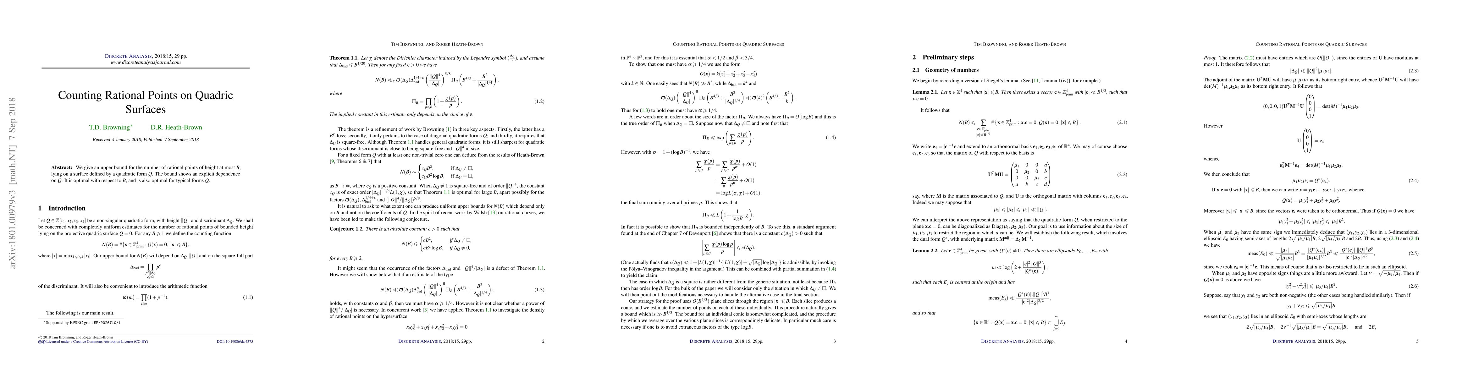 We give an upper bound for the number of rational points of height at most $B$, lying on a surface defined by a quadratic form $Q$. The bound shows an explicit dependence on $Q$. It is optimal with respect to $B$, and is also optimal for typical forms $Q$.
