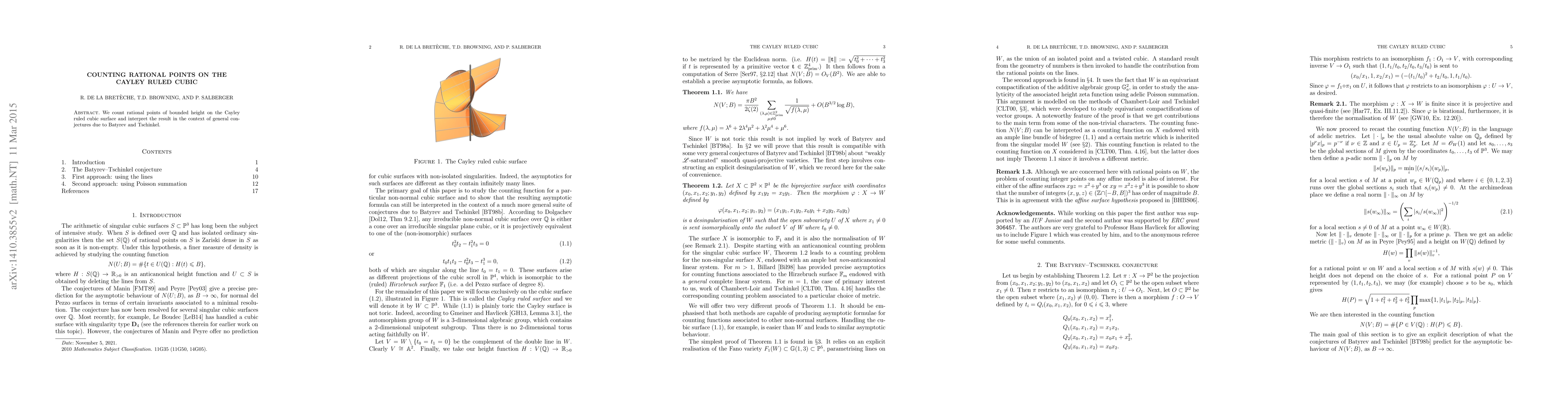 Summary: This paper provides a count of rational points of bounded height on the Cayley ruled cubic surface and aligns the findings with conjectures proposed by Batyrev and Tschinkel regarding rational points on cubic surfaces.