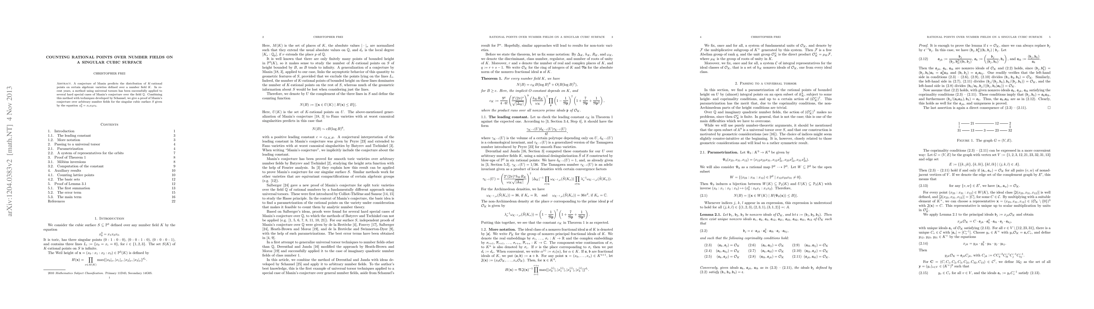 This paper proves Manin's conjecture for the distribution of K-rational points on the singular cubic surface defined by w^3 = x y z over any number field K, using a method involving universal torsors and techniques from Schanuel. This extends the application of these methods beyond the rational numbers to arbitrary number fields.