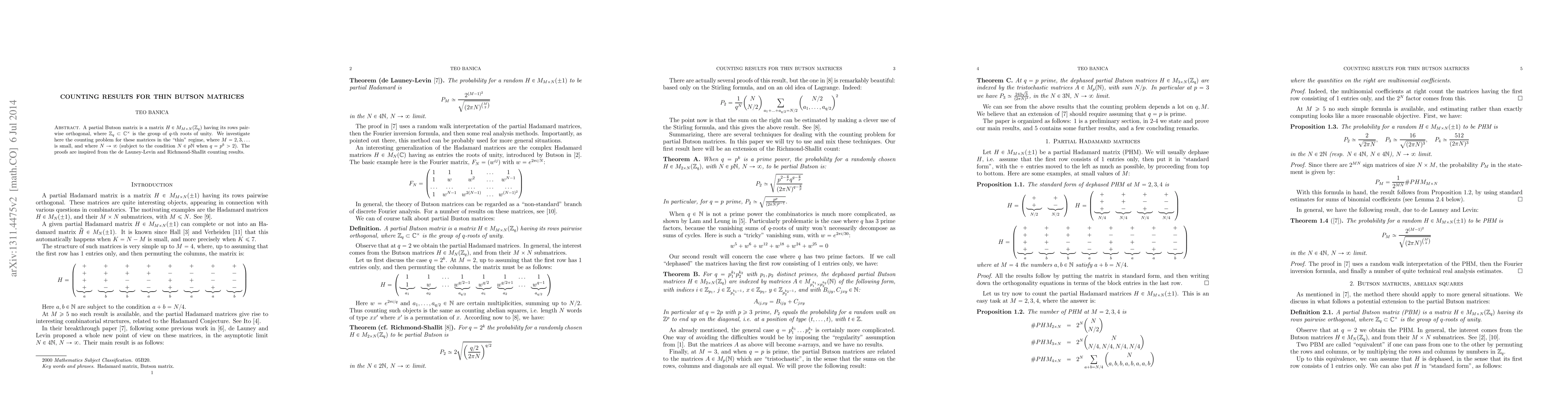 A partial Butson matrix is a matrix $H\in M_{M\times N}(\mathbb Z_q)$ having its rows pairwise orthogonal, where $\mathbb Z_q\subset\mathbb C^\times$ is the group of $q$-th roots of unity. We investigate here the counting problem for these matrices in the "thin" regime, where $M=2,3,\ldots$ is small, and where $N\to\infty$ (subject to the condition $N\in p\mathbb N$ when $q=p^k>2$). The proofs are inspired from the de Launey-Levin and Richmond-Shallit counting results.