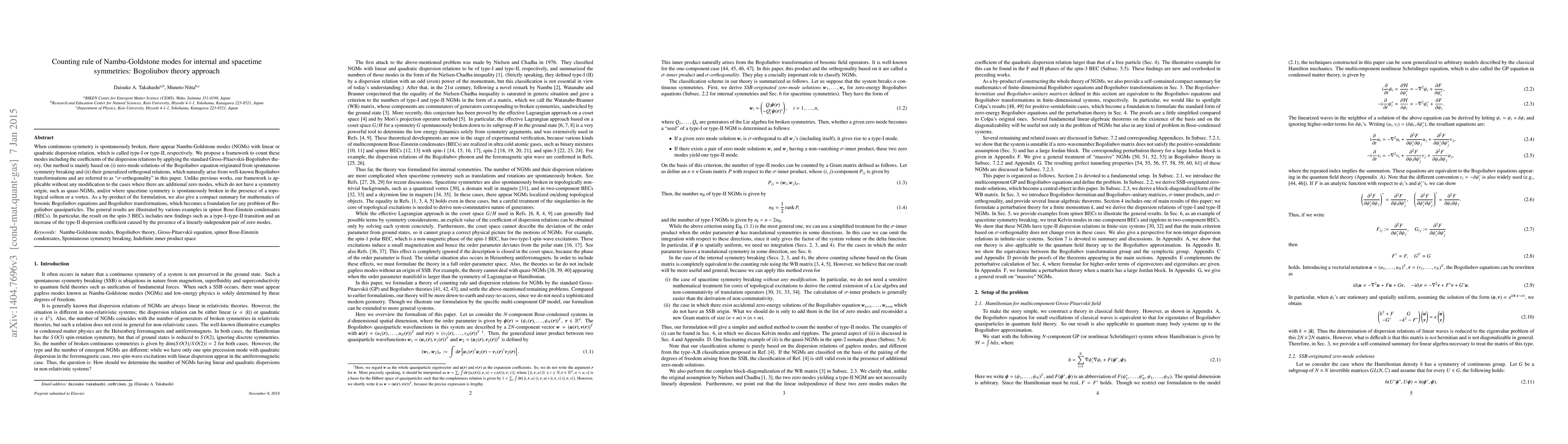 Researchers developed a framework to count Nambu-Goldstone modes in quantum systems with spontaneous symmetry breaking, enabling predictions of their dispersion relations and implications for spinor Bose-Einstein condensates.
