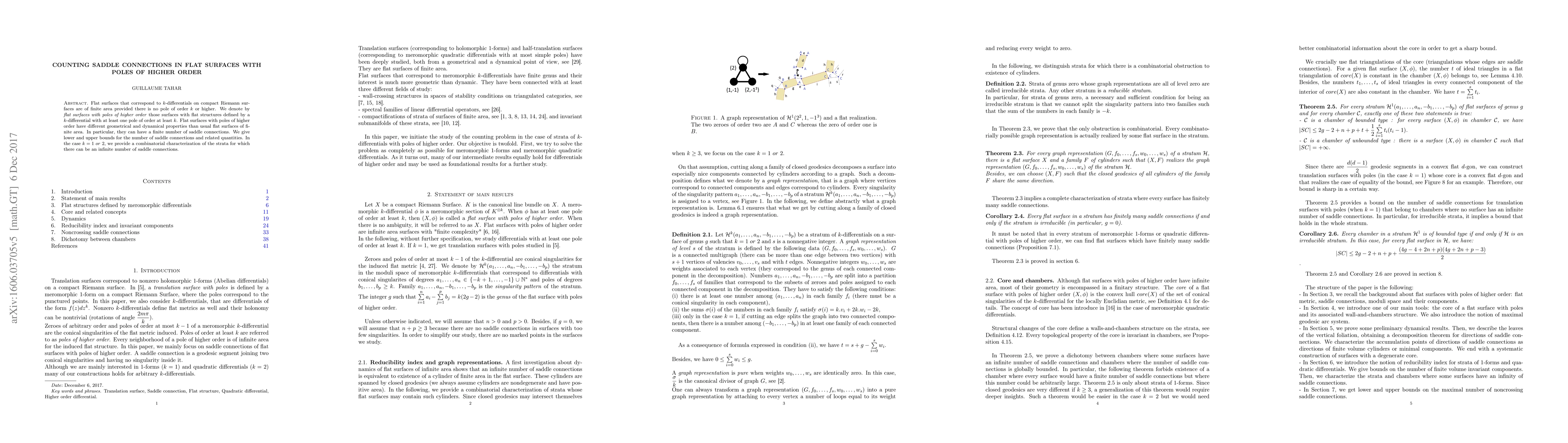 This paper explores flat surfaces with higher-order poles in $k$-differentials, providing bounds on the number of saddle connections and a combinatorial characterization for certain strata where infinite saddle connections may occur. It highlights the unique geometrical and dynamical properties of these surfaces compared to finite area flat surfaces.