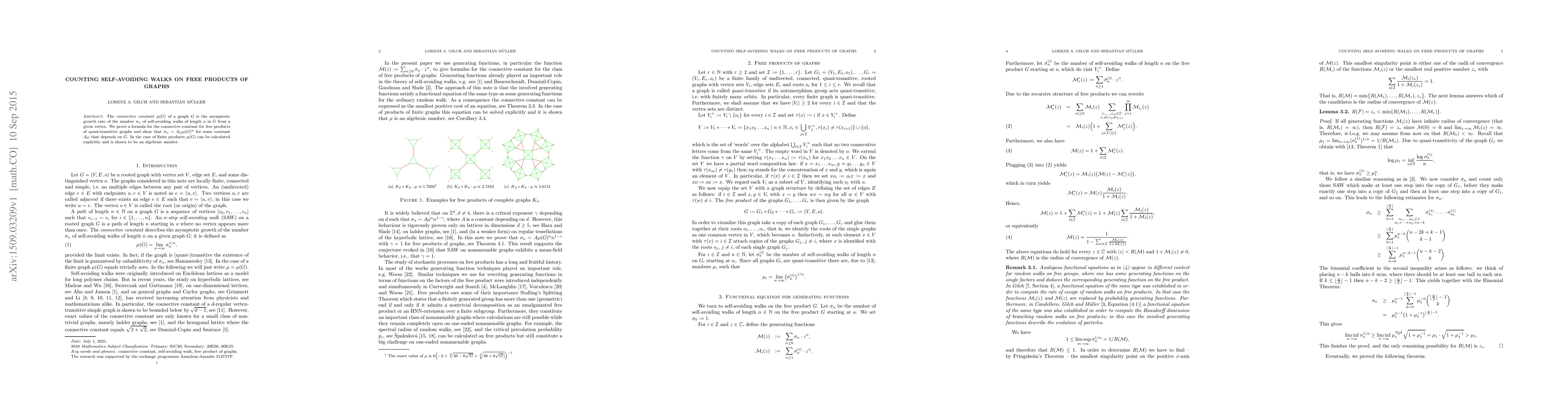 The paper establishes a formula for the connective constant $\mu(G)$ of free products of quasi-transitive graphs, demonstrating that the number of self-avoiding walks $\sigma_{n}$ grows asymptotically as $A_{G} \mu(G)^{n}$. For finite products, $\mu(G)$ is shown to be an explicit algebraic number.