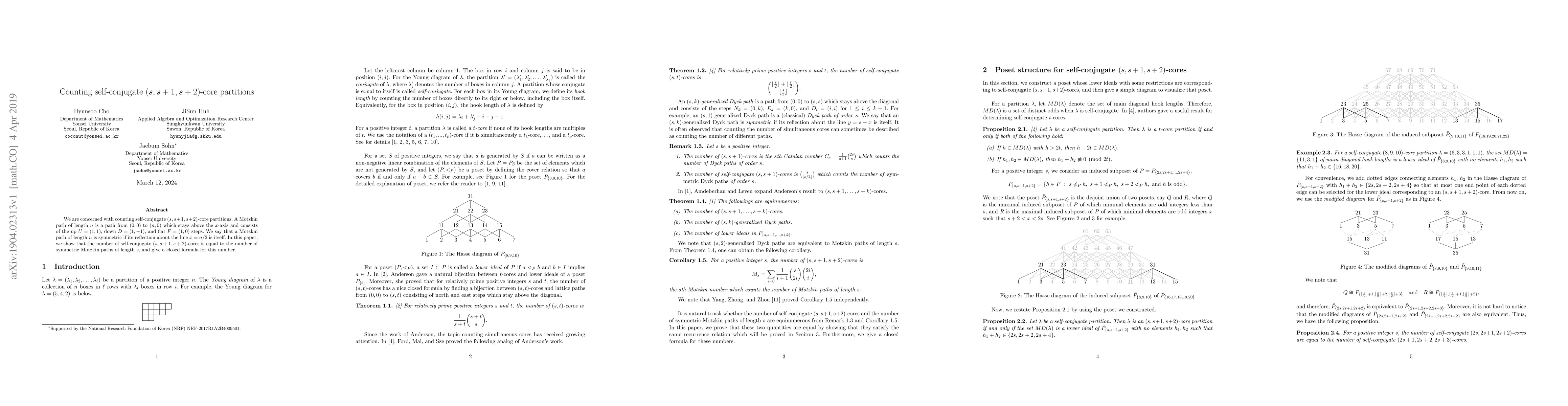 This paper establishes a connection between self-conjugate $(s,s+1,s+2)$-core partitions and symmetric Motzkin paths, providing a closed formula for counting these core partitions based on the number of such symmetric paths of length $s$.