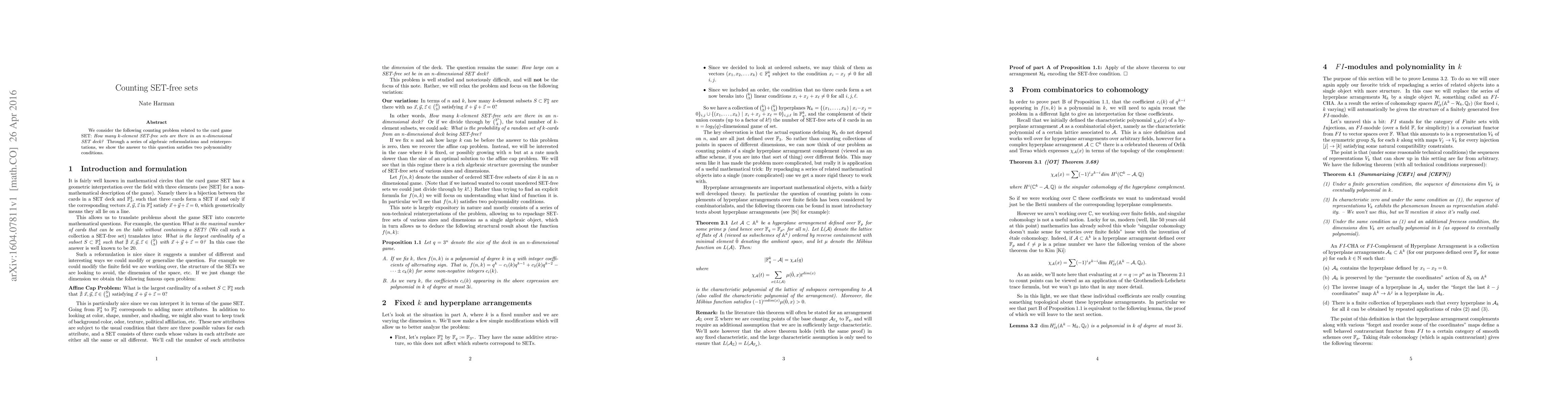 We consider the following counting problem related to the card game SET: How many $k$-element SET-free sets are there in an $n$-dimensional SET deck? Through a series of algebraic reformulations and reinterpretations, we show the answer to this question satisfies two polynomiality conditions.
