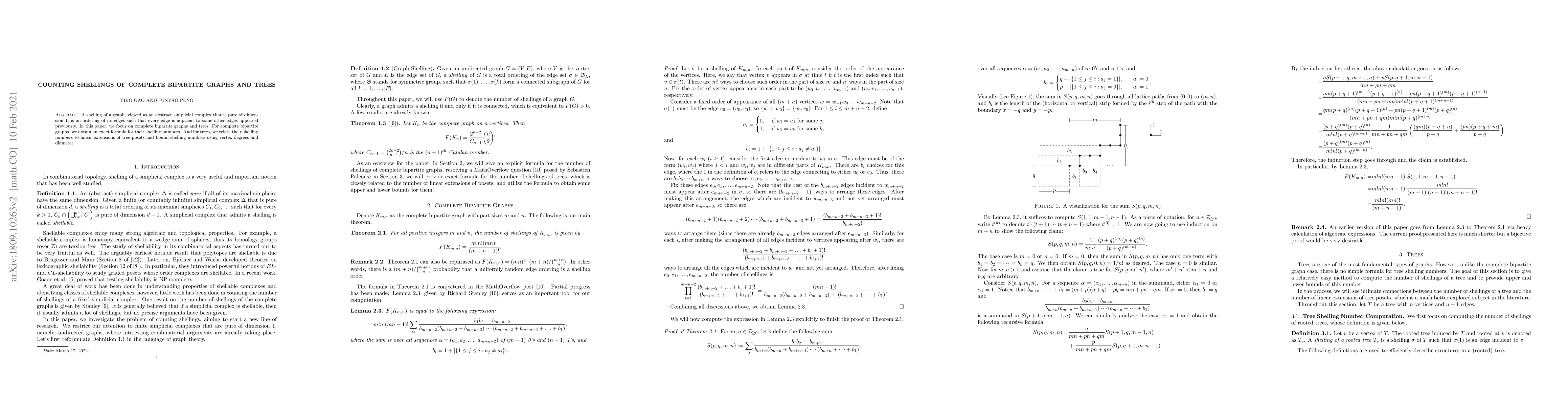 This paper provides an exact formula for the shelling numbers of complete bipartite graphs, and explores the relationship between the shelling numbers of trees and linear extensions of tree posets, along with bounds based on vertex degrees and diameter.