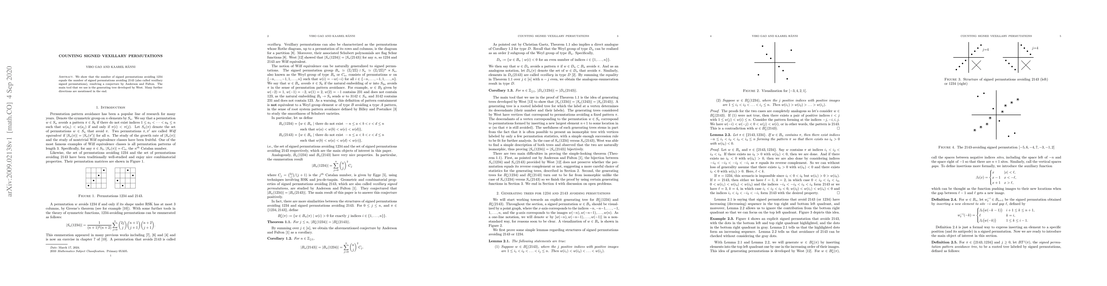 This paper resolves a conjecture by proving that the number of signed permutations avoiding 1234 is equal to those avoiding 2143, known as vexillary signed permutations, using West's generating tree as a key tool. Further research directions are discussed.