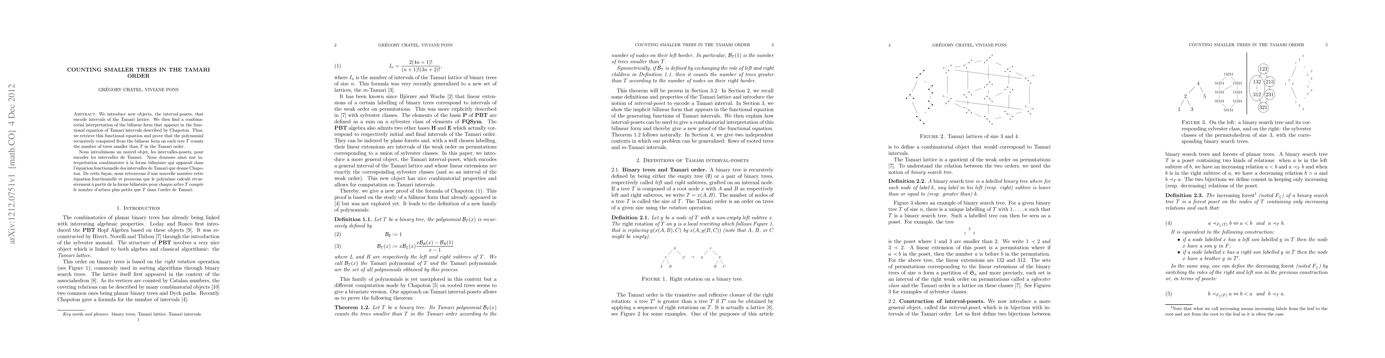 This paper introduces interval-posets to encode intervals of the Tamari lattice and provides a combinatorial interpretation of the bilinear form in Chapoton's functional equation. It then proves that the polynomial derived from this form recursively counts the number of trees smaller than a given tree in the Tamari order.