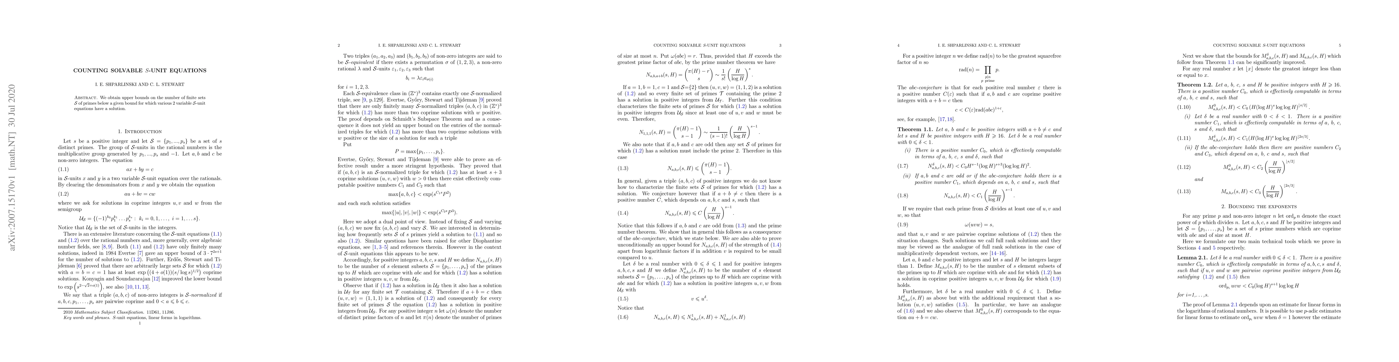 Summary: This paper provides upper bounds for the number of finite sets of primes below a specified limit that allow solutions to various two-variable $S$-unit equations. The focus is on understanding the solvability of these equations under specific constraints.