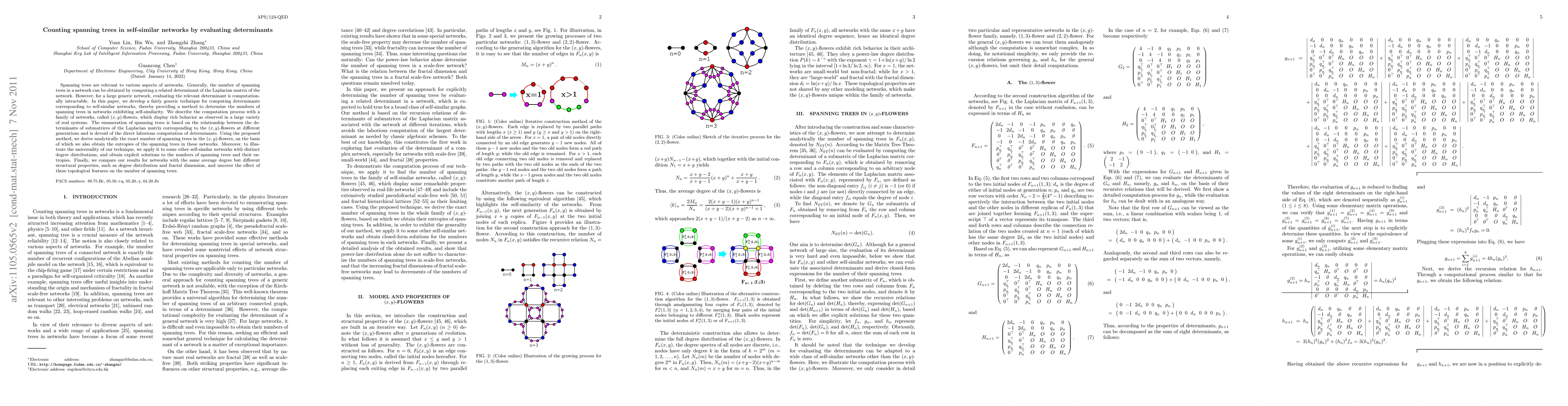 This paper develops a method for computing the number of spanning trees in self-similar networks by evaluating determinants without direct computation, focusing on $(x,y)$-flowers and other self-similar networks. The method reveals the exact number of spanning trees and their entropies, highlighting the impact of network topology on these metrics.