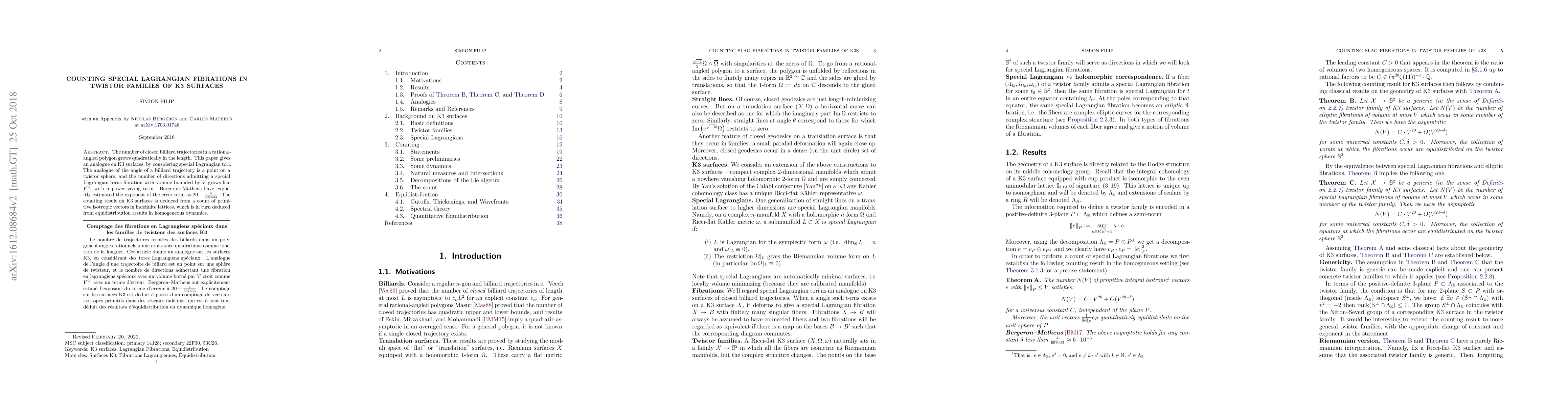 The number of closed billiard trajectories in a rational-angled polygon grows quadratically in the length. This paper gives an analogue on K3 surfaces, by considering special Lagrangian tori. The analogue of the angle of a billiard trajectory is a point on a twistor sphere, and the number of directions admitting a special Lagrangian torus fibration with volume bounded by $ V $ grows like $ V^{20} $ with a power-saving term. Bergeron--Matheus have explicitly estimated the exponent of the error term as $ {20-\frac{4}{697633} }$. The counting result on K3 surfaces is deduced from a count of primitive isotropic vectors in indefinite lattices, which is in turn deduced from equidistribution results in homogeneous dynamics.