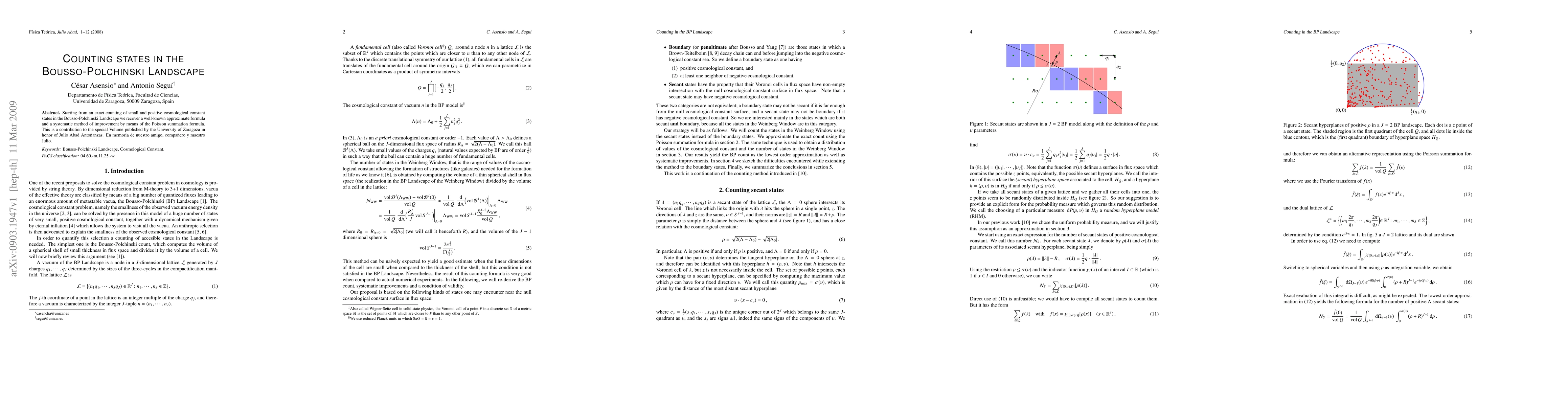 Starting from an exact counting of small and positive cosmological constant states in the Bousso-Polchinski Landscape we recover a well-known approximate formula and a systematic method of improvement by means of the Poisson summation formula. This is a contribution to the special Volume published by the University of Zaragoza in honor of Julio Abad Anto\~nanzas. En memoria de nuestro amigo, compa\~nero y maestro Julio.