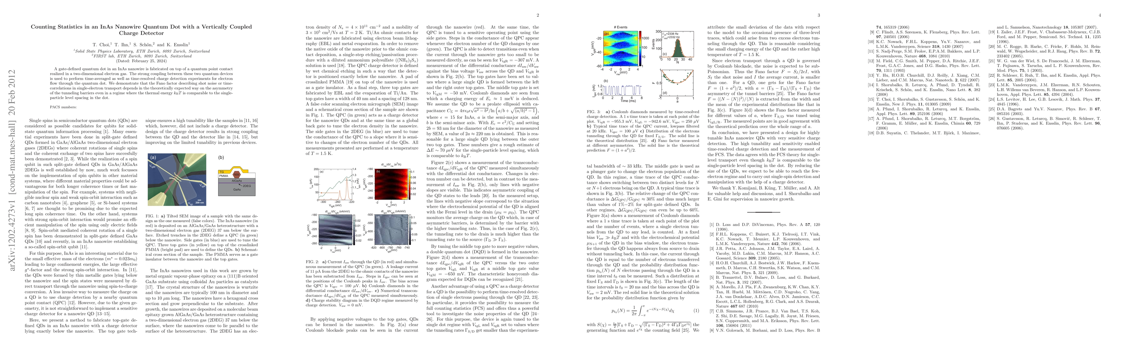 This paper investigates electron flow through a gate-defined quantum dot in an InAs nanowire using a vertically coupled quantum point contact. The study reveals that the Fano factor, which describes shot noise and time-correlations, depends on the asymmetry of tunneling barriers, even when thermal energy is comparable to the dot's level spacing.