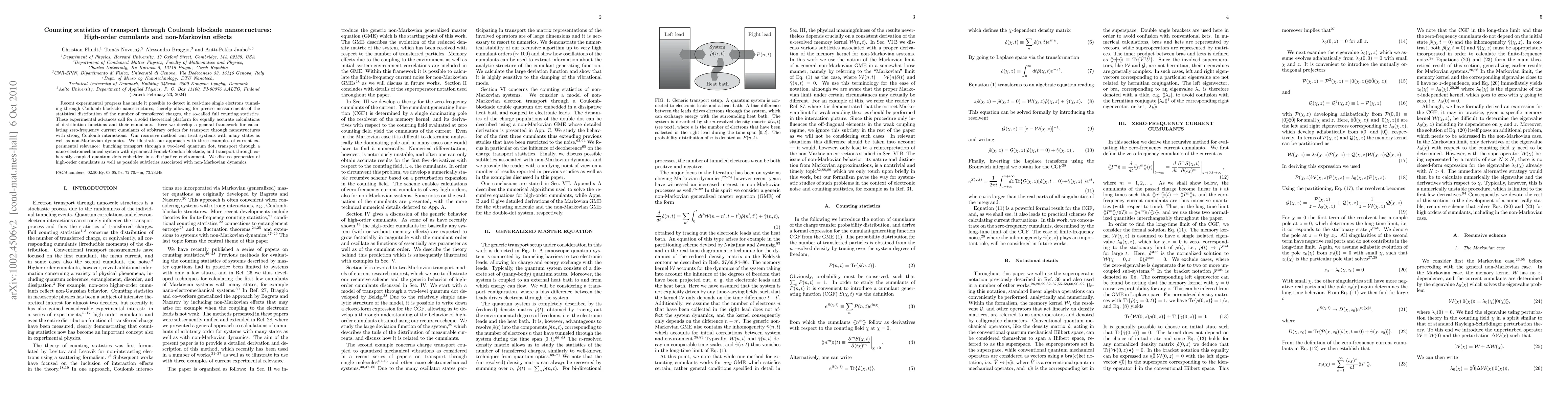 The research develops a recursive method for calculating zero-frequency current cumulants of arbitrary orders for transport through nanostructures with strong Coulomb interactions, applicable to systems with many states and non-Markovian dynamics.