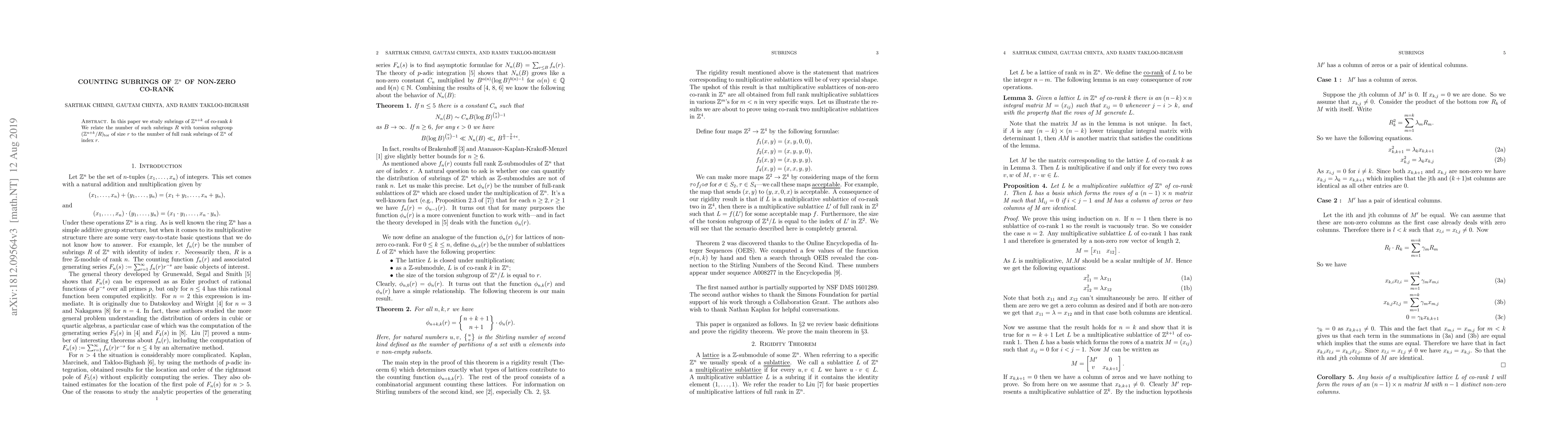 Researchers studied subrings of $oldsymbol{oldsymbol{Z}^{n+k}}$ with non-zero co-rank $k$, focusing on counting them. The paper aims to understand the structure of these subrings.