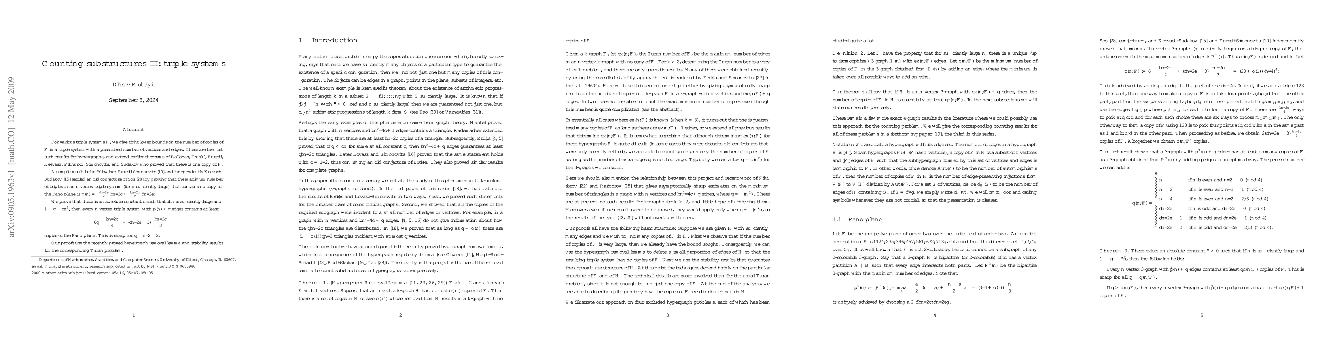 This paper provides improved lower bounds for the number of specific substructures (triple systems) in large hypergraphs, extending previous work that only guaranteed the existence of at least one such substructure. Utilizing recent advancements in hypergraph removal lemmas and stability results, the research establishes that for sufficiently large even 'n', a triple system with nearly maximal edges must contain many copies of the Fano plane. The findings are sharp under certain conditions, contributing significantly to the study of extremal hypergraph theory.