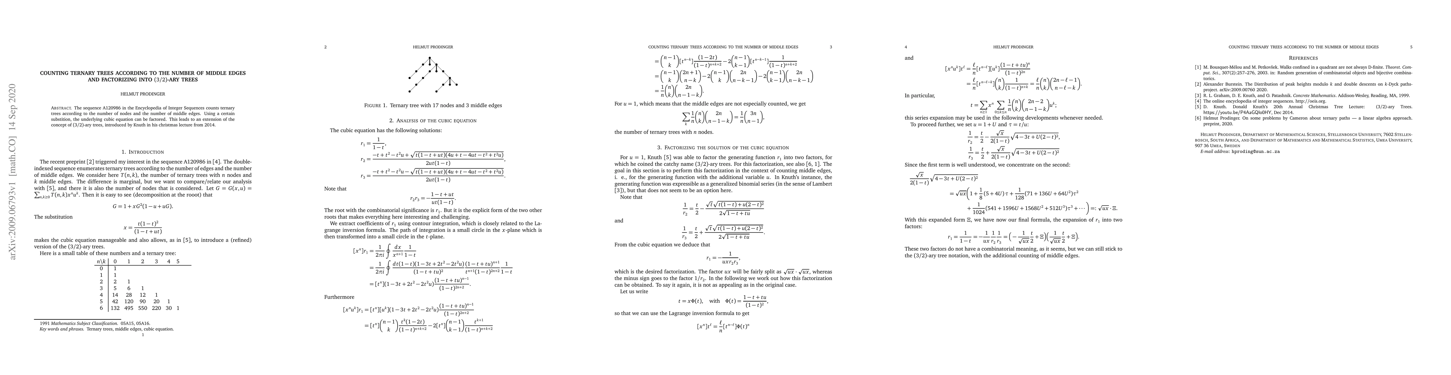 The sequence A120986 in the Encyclopedia of Integer Sequences counts ternary trees according to the number of nodes and the number of middle edges. Using a certain substition, the underlying cubic equation can be factored. This leads to an extension of the concept of $(3/2)$-ary trees, introduced by Knuth in his christmas lecture from 2014.