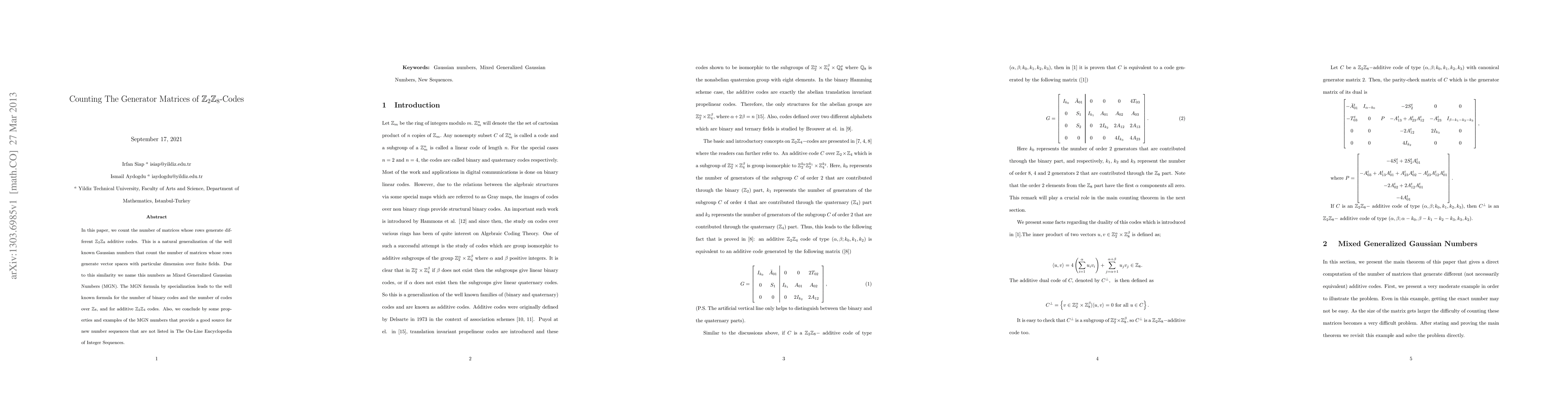 In this paper, we count the number of matrices whose rows generate different $\mathbb{Z}_2\mathbb{Z}_8$ additive codes. This is a natural generalization of the well known Gaussian numbers that count the number of matrices whose rows generate vector spaces with particular dimension over finite fields. Due to this similarity we name this numbers as Mixed Generalized Gaussian Numbers (MGN). The MGN formula by specialization leads to the well known formula for the number of binary codes and the number of codes over $\mathbb{Z}_8,$ and for additive $\mathbb{Z}_2\mathbb{Z}_4$ codes. Also, we conclude by some properties and examples of the MGN numbers that provide a good source for new number sequences that are not listed in The On-Line Encyclopedia of Integer Sequences.