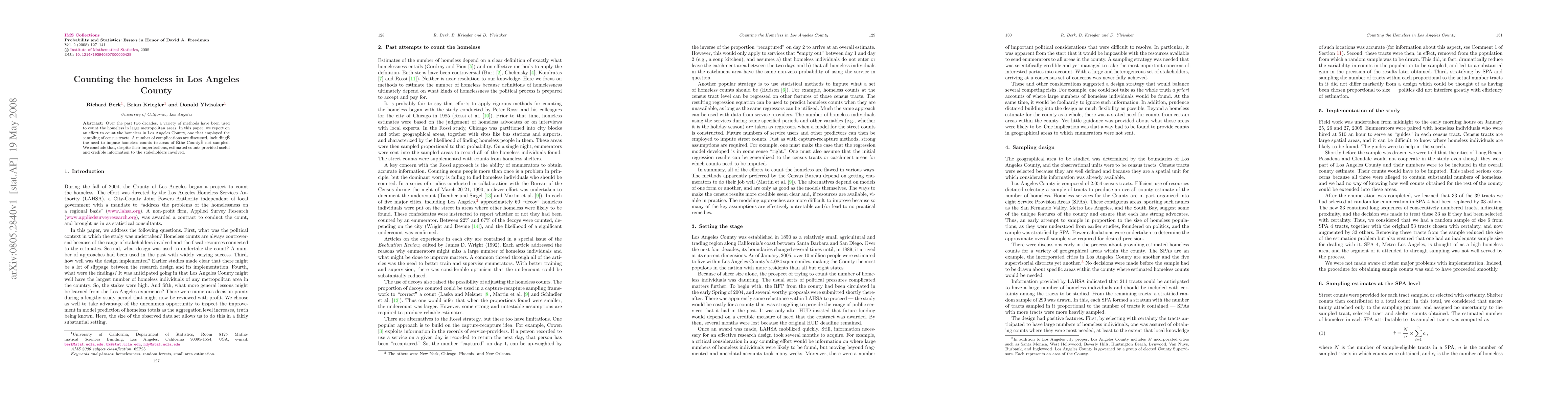 This paper reports on a sampling-based effort to count the homeless population in Los Angeles County, addressing complexities like imputation for unsampled areas. Despite methodological limitations, the estimated counts offered valuable and credible insights to stakeholders.