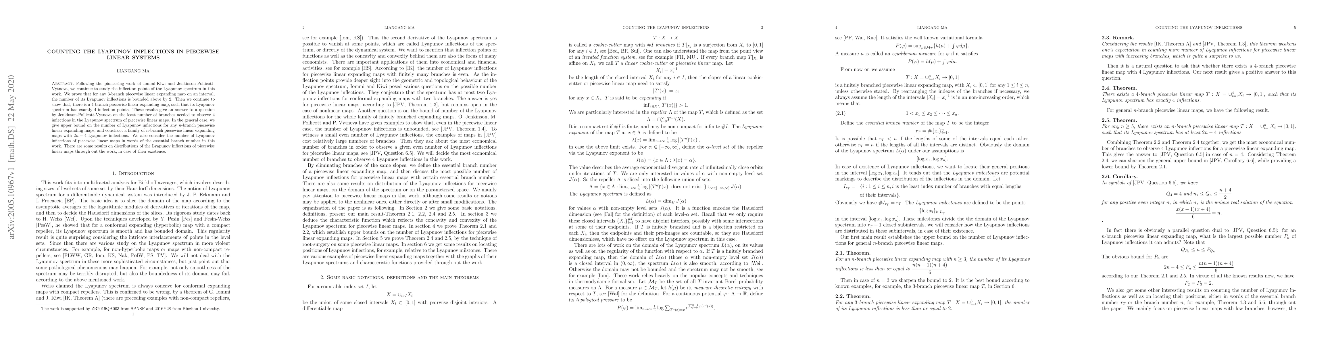 This paper investigates the inflection points of the Lyapunov spectrum in piecewise linear expanding maps, proving that 3-branch maps have at most 2 inflections while 4-branch maps can have exactly 4. It provides an upper bound for n-branch maps and constructs examples achieving the maximum number of inflections.
