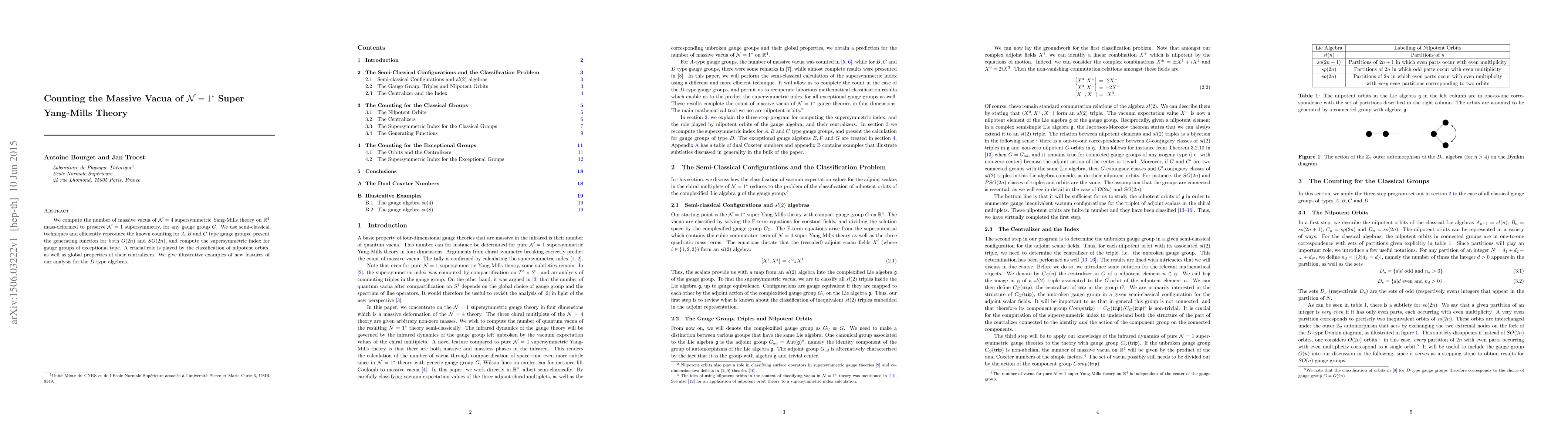 We compute the number of massive vacua of N=4 supersymmetric Yang-Mills theory mass-deformed to preserve N=1 supersymmetry, for any gauge group G. We use semi-classical techniques and efficiently reproduce the known counting for A,B and C-type gauge groups, present the generating function for both O(2n) and SO(2n), and compute the supersymmetric index for gauge groups of exceptional type. A crucial role is played by the classification of nilpotent orbits, as well as global properties of their centralizers. We give illustrative examples of new features of our analysis for the D-type algebras.