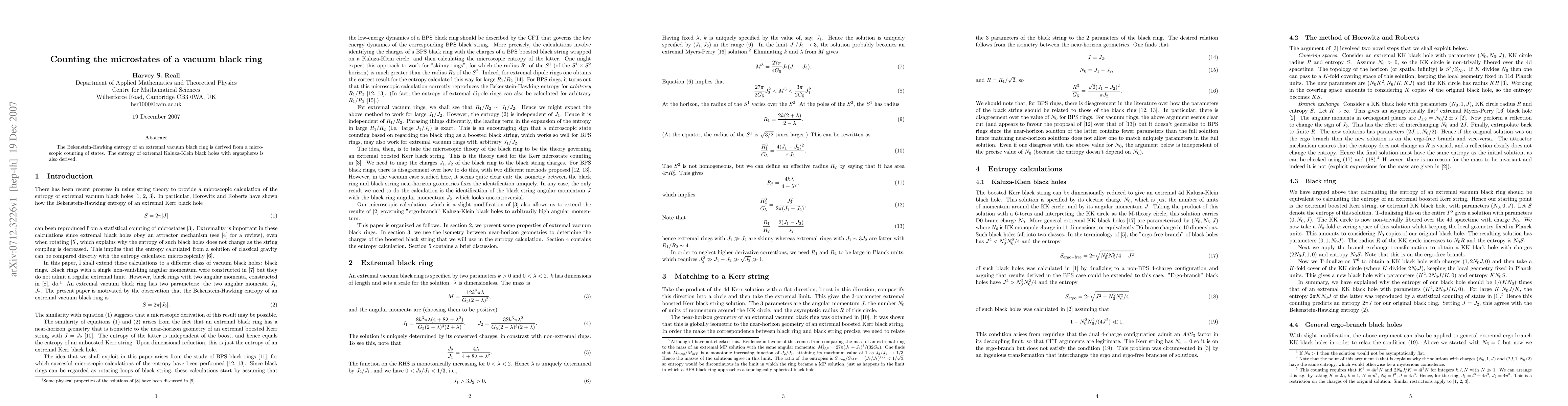 This research derives the Bekenstein-Hawking entropy of an extremal vacuum black ring from a microscopic state count, also extending the derivation to extremal Kaluza-Klein black holes with ergospheres.