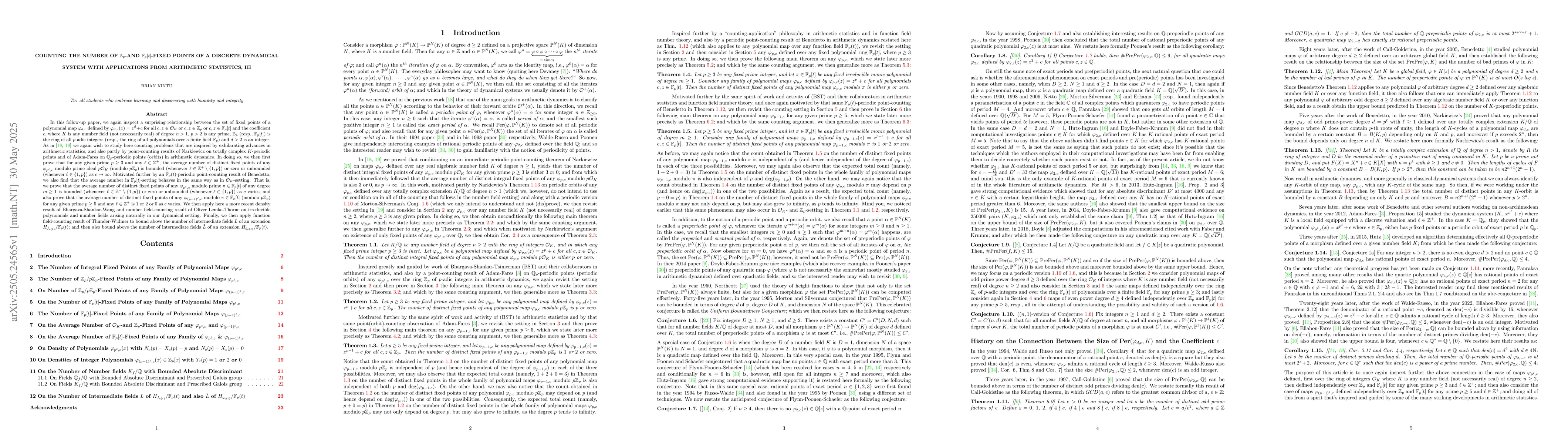 This research contributes to the understanding of fixed points in discrete dynamical systems, with applications in arithmetic statistics, and builds on previous works in arithmetic dynamics and p-adic analysis.