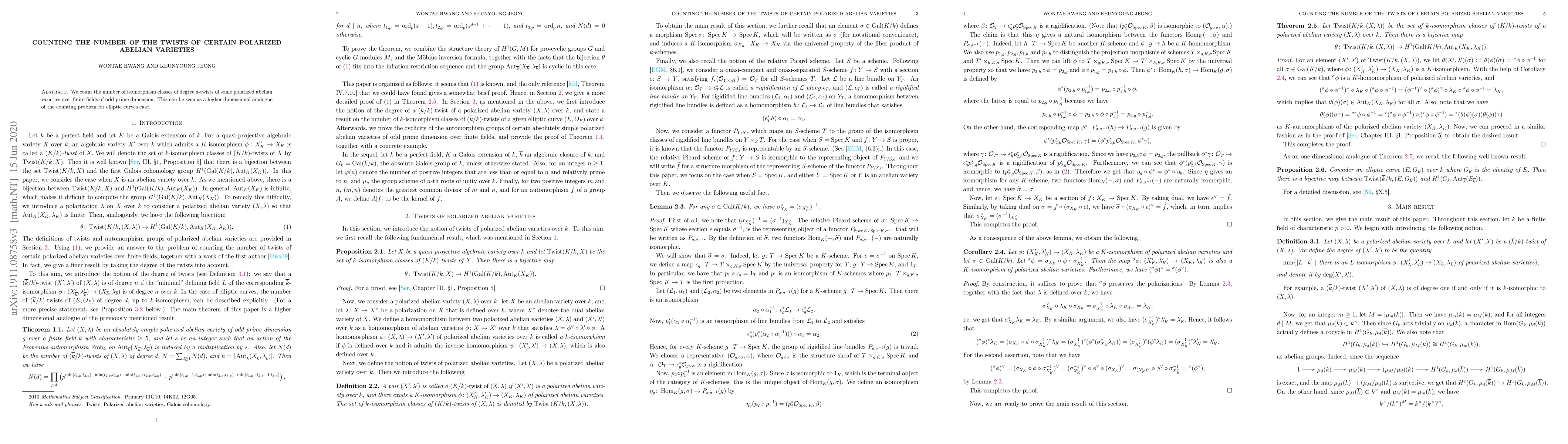 Summary: This paper investigates the number of isomorphism classes of degree $d$-twists of polarized abelian varieties over finite fields of odd prime dimension, extending the counting problem traditionally associated with elliptic curves to higher dimensions.