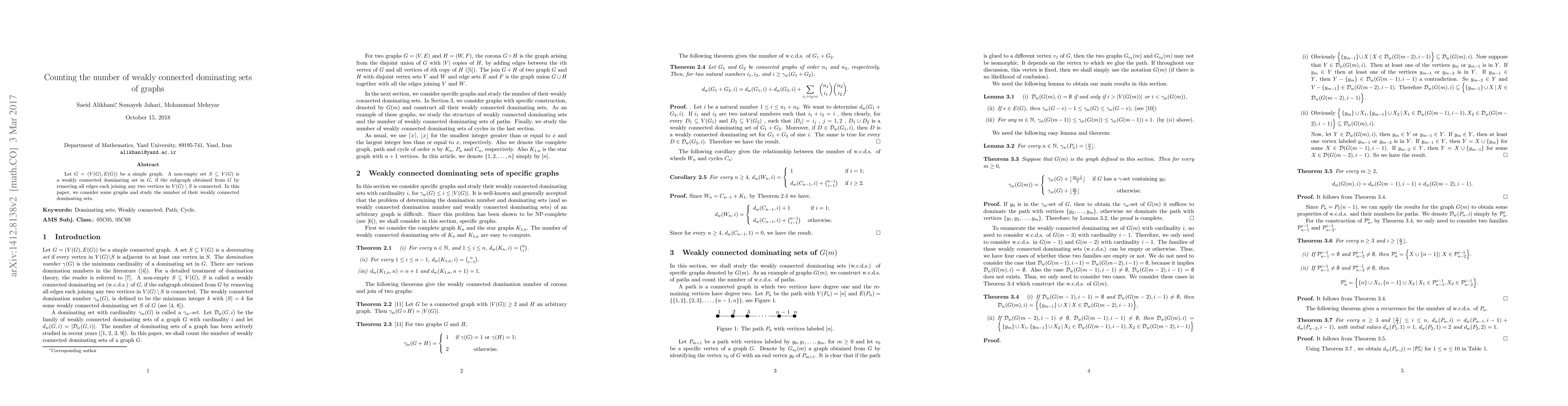 Let $G=(V(G),E(G))$ be a simple graph. A non-empty set $S\subseteq V (G)$ is a weakly connected dominating set in $G$, if the subgraph obtained from $G$ by removing all edges each joining any two vertices in $V (G)\setminus S$ is connected. In this paper, we consider some graphs and study the number of their weakly connected dominating sets.