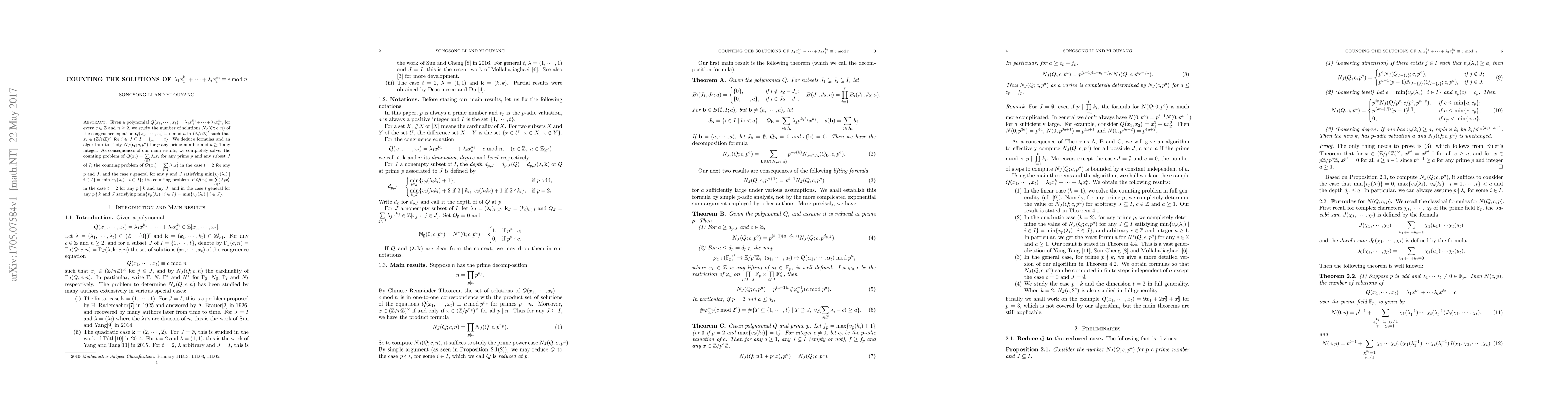 The paper presents a study on the congruence equation λ₁x₁^(k₁) + ... + λ_t x_t^(k_t) ≡ c (mod n), providing formulas and an algorithm for counting solutions in (Z/nZ)^t under specific conditions.