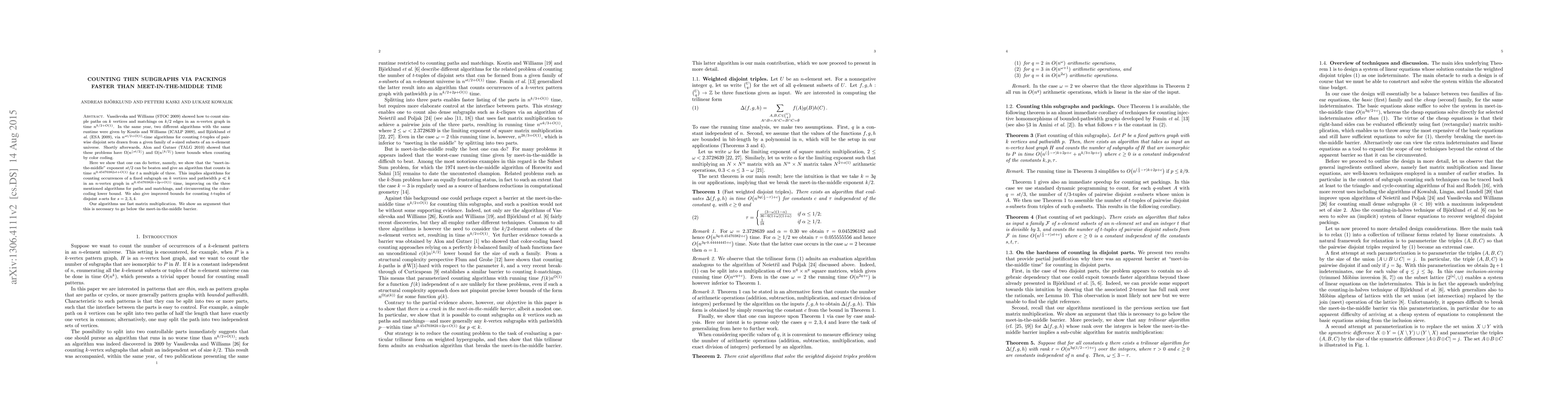 Researchers have developed a new algorithm that counts thin subgraphs in graphs faster than previously known methods, achieving time complexities of $n^{0.45470382st + O(1)}$ for certain cases.