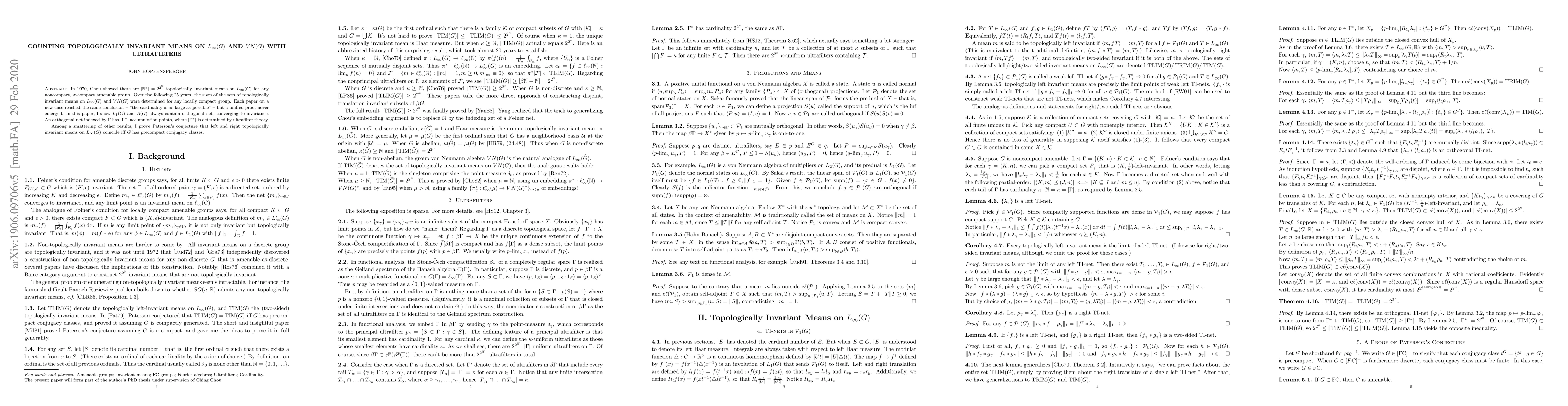 This paper establishes that topologically invariant means on L∞(G) and VN(G) have a large cardinality determined by ultrafilter theory, resolving a 25-year-old conjecture and providing new insights into the subject.