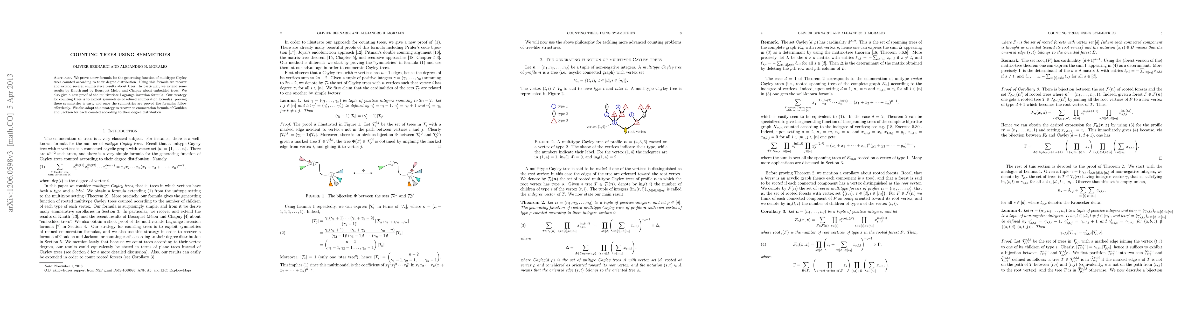 We prove a new formula for the generating function of multitype Cayley trees counted according to their degree distribution. Using this formula we recover and extend several enumerative results about trees. In particular, we extend some results by Knuth and by Bousquet-M\'elou and Chapuy about embedded trees. We also give a new proof of the multivariate Lagrange inversion formula. Our strategy for counting trees is to exploit symmetries of refined enumeration formulas: proving these symmetries is easy, and once the symmetries are proved the formulas follow effortlessly. We also adapt this strategy to recover an enumeration formula of Goulden and Jackson for cacti counted according to their degree distribution.