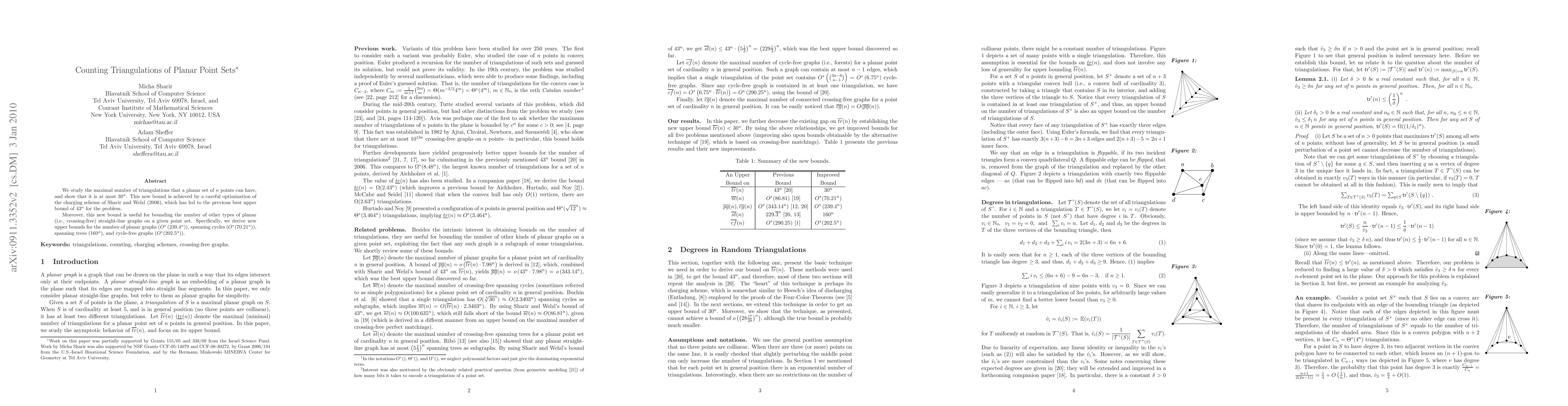 We study the maximal number of triangulations that a planar set of $n$ points can have, and show that it is at most $30^n$. This new bound is achieved by a careful optimization of the charging scheme of Sharir and Welzl (2006), which has led to the previous best upper bound of $43^n$ for the problem. Moreover, this new bound is useful for bounding the number of other types of planar (i.e., crossing-free) straight-line graphs on a given point set. Specifically, we derive new upper bounds for the number of planar graphs ($o(239.4^n)$), spanning cycles ($O(70.21^n)$), and spanning trees ($160^n$).