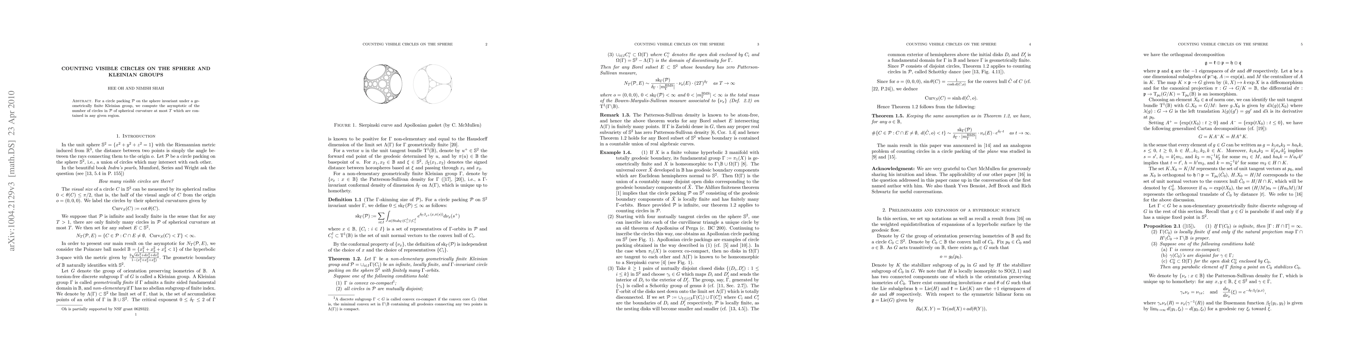 This paper counts visible circles on a sphere that are invariant under a Kleinian group and have spherical curvature at most $T$, focusing on their distribution within any given region.