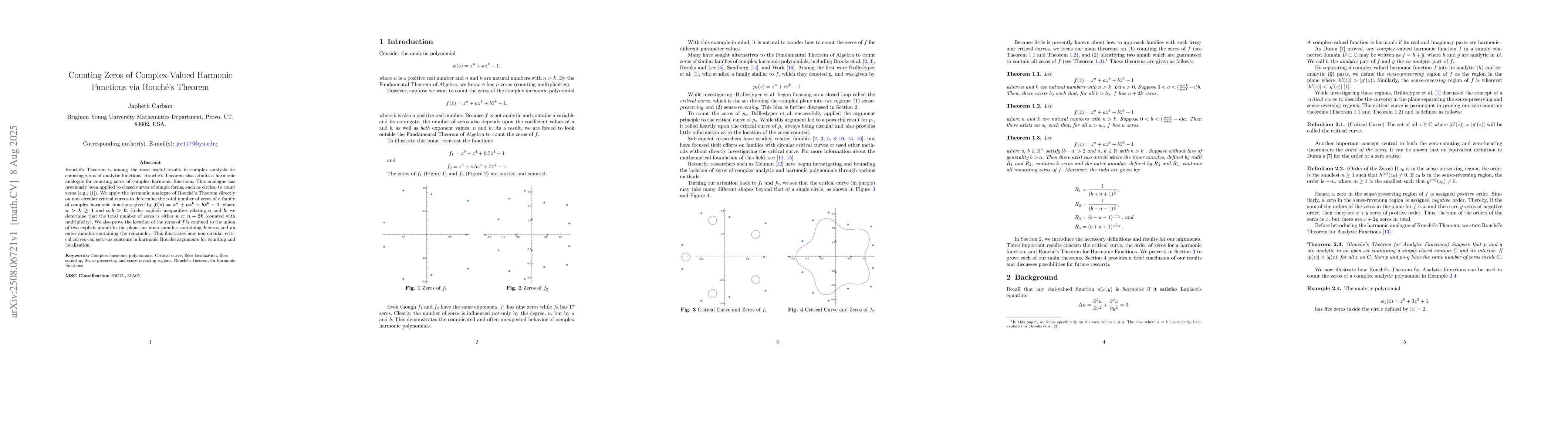 Rouch\'e's Theorem is among the most useful results in complex analysis for counting zeros of analytic functions. Rouch\'e's Theorem also admits a harmonic analogue for counting zeros of complex harmonic functions. This analogue has previously been applied to closed curves of simple forms, such as circles, to count zeros (e.g., \cite{Brilleslyper}). We apply the harmonic analogue of Rouch\'e's Theorem directly on non-circular critical curves to determine the total number of zeros of a family of complex harmonic functions given by $f(z) = z^n + az^k + b\overline{z}^k - 1 $, where $n>k\geq1$ and $a,b > 0$. Under explicit inequalities relating $a$ and $b$, we determine that the total number of zeros is either $n$ or $n+2k$ (counted with multiplicity). We also prove the location of the zeros of $f$ is confined to the union of two explicit annuli in the plane: an inner annulus containing $k$ zeros and an outer annulus containing the remainder. This illustrates how non-circular critical curves can serve as contours in harmonic Rouch\'e arguments for counting and localization.