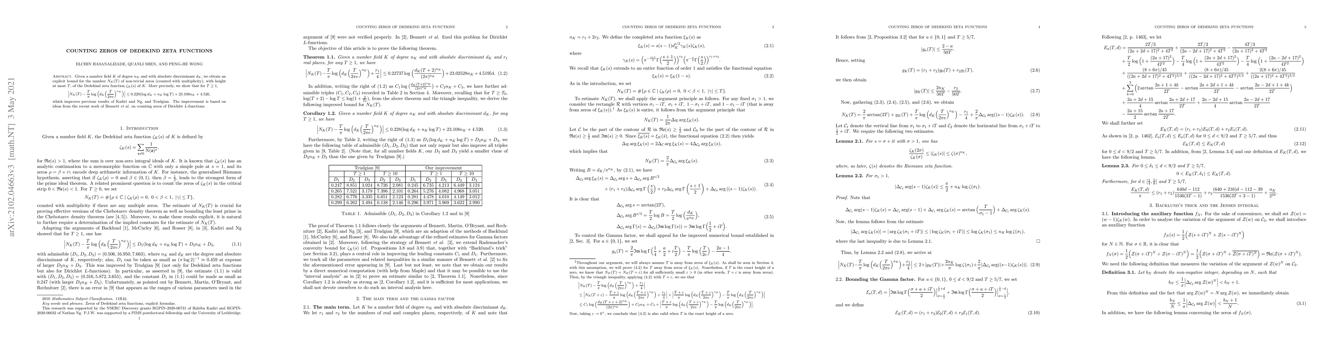 This paper provides an improved explicit bound for the number of non-trivial zeros of the Dedekind zeta function of a number field, refining previous results by Kadiri, Ng, and Trudgian. The new bound leverages techniques from recent studies on Dirichlet L-functions.