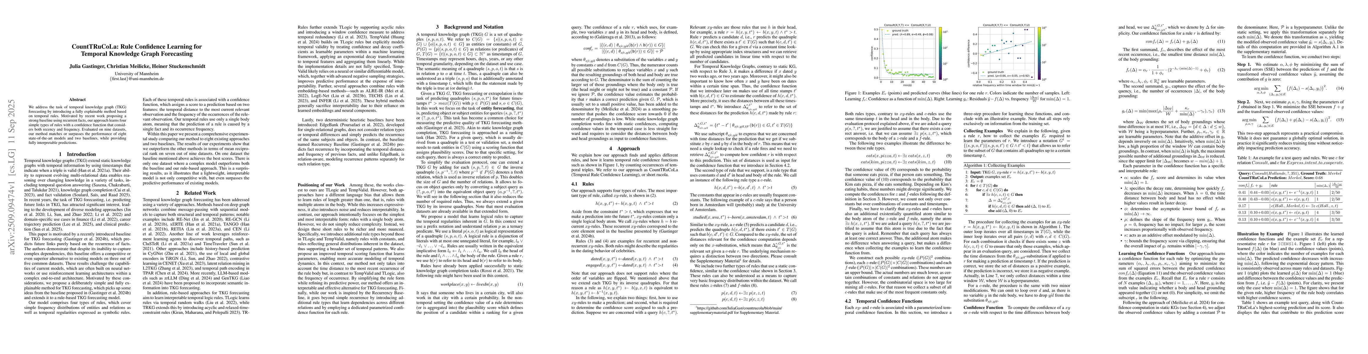 We address the task of temporal knowledge graph (TKG) forecasting by introducing a fully explainable method based on temporal rules. Motivated by recent work proposing a strong baseline using recurrent facts, our approach learns four simple types of rules with a confidence function that considers both recency and frequency. Evaluated on nine datasets, our method matches or surpasses the performance of eight state-of-the-art models and two baselines, while providing fully interpretable predictions.