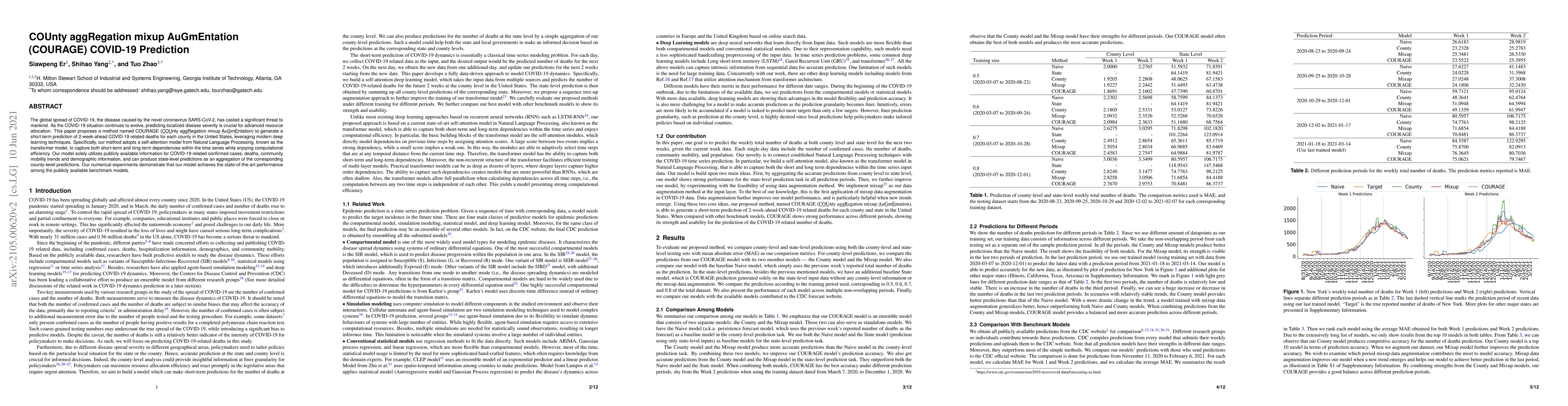 The paper introduces COURAGE, a deep learning method using a transformer model to predict 2-week-ahead COVID-19 related deaths for U.S. counties, leveraging confirmed cases, mobility trends, and demographic data. The model achieves state-of-the-art performance in localized COVID-19 severity predictions.