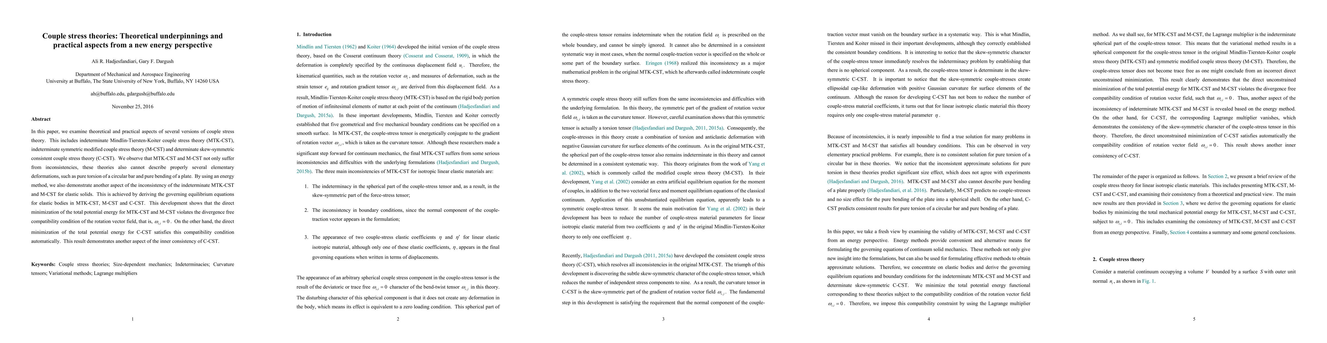 This paper evaluates various couple stress theories, highlighting inconsistencies in Mindlin-Tiersten-Koiter and modified couple stress theories. It demonstrates that these theories fail to accurately describe elementary deformations and violate compatibility conditions, while the consistent skew-symmetric theory adheres to these principles.