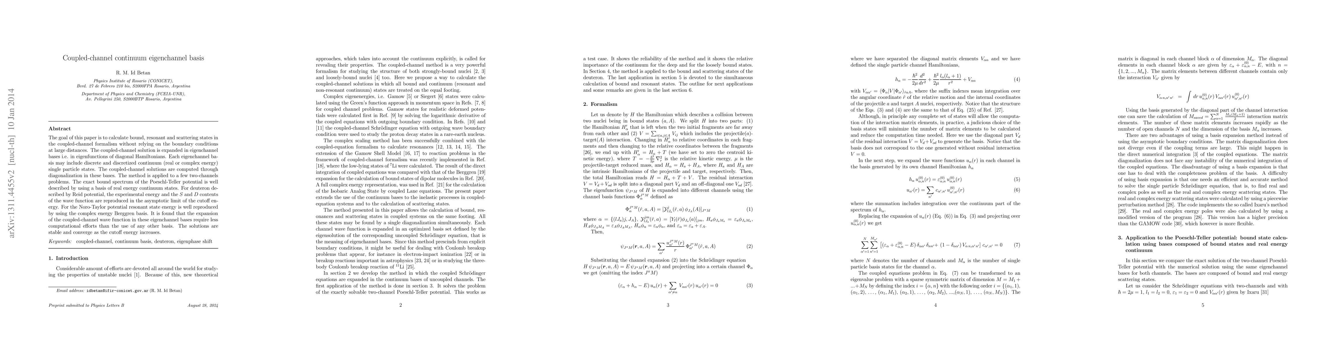 The goal of this paper is to calculate bound, resonant and scattering states in the coupled-channel formalism without relying on the boundary conditions at large distances. The coupled-channel solution is expanded in eigenchannel bases i.e. in eigenfunctions of diagonal Hamiltonians. Each eigenchannel basis may include discrete and discretized continuum (real or complex energy) single particle states. The coupled-channel solutions are computed through diagonalization in these bases. The method is applied to a few two-channels problems. The exact bound spectrum of the Poeschl-Teller potential is well described by using a basis of real energy continuum states. For deuteron described by Reid potential, the experimental energy and the S and D contents of the wave function are reproduced in the asymptotic limit of the cutoff energy. For the Noro-Taylor potential resonant state energy is well reproduced by using the complex energy Berggren basis. It is found that the expansion of the coupled-channel wave function in these eigenchannel bases require less computational efforts than the use of any other basis. The solutions are stable and converge as the cutoff energy increases.