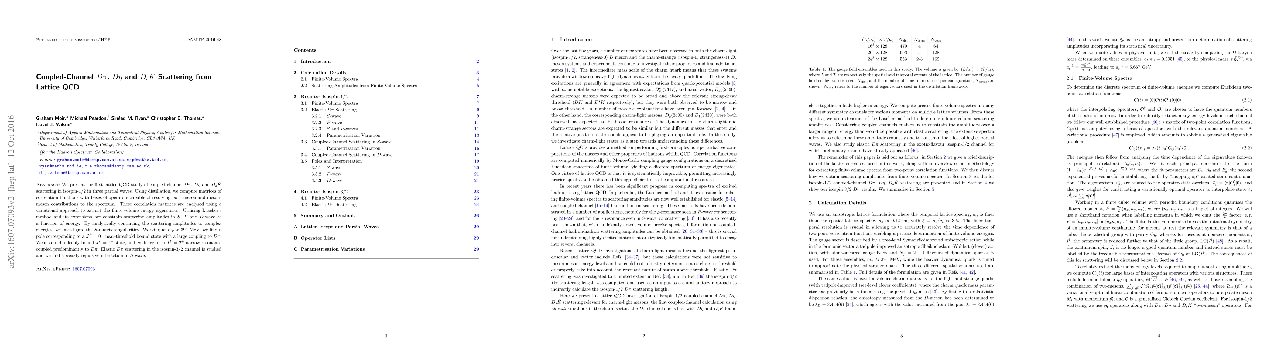 This paper presents the first lattice QCD study of coupled-channel $D\pi$, $D\eta$, and $D_{s}\bar{K}$ scattering, revealing a near-threshold bound state and a deeply bound state, along with evidence for a narrow resonance, using variational methods and L\"uscher's formalism. Elastic $D\pi$ scattering in isospin-$3/2$ shows a weakly repulsive interaction.