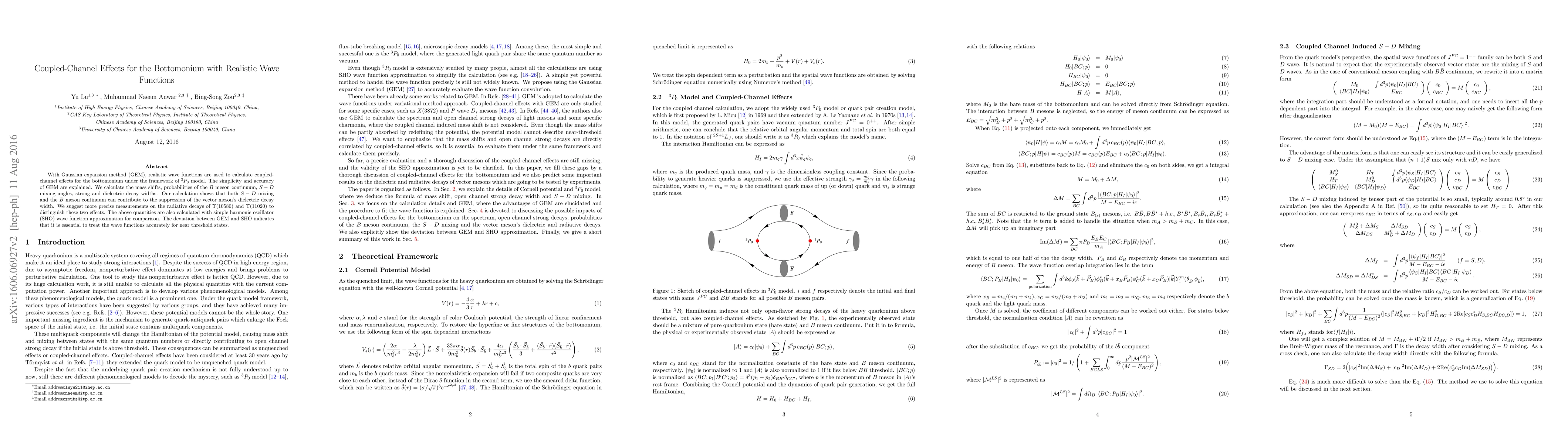 This paper uses the Gaussian expansion method (GEM) to calculate coupled-channel effects for bottomonium, finding significant contributions from $S-D$ mixing and the $B$ meson continuum to the suppression of vector meson's decay width. Comparisons with simple harmonic oscillator approximations highlight the necessity of accurate wave functions for near threshold states.