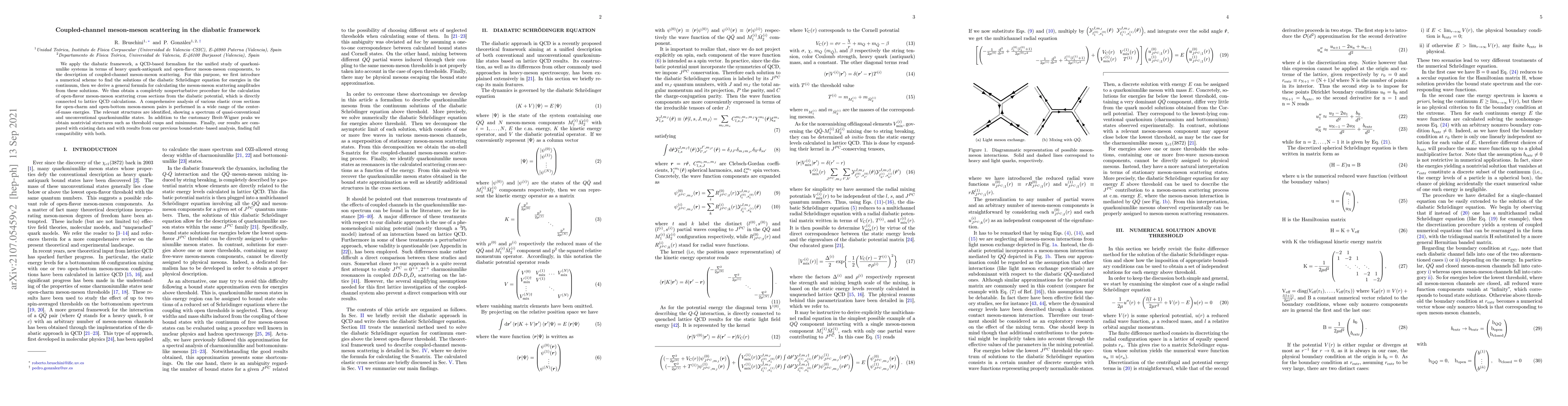 This paper applies the diabatic framework to study coupled-channel meson-meson scattering, developing a nonperturbative method for calculating scattering cross sections. The analysis reveals a spectrum of quarkoniumlike states, including unconventional structures, and shows compatibility with existing data and previous analyses.