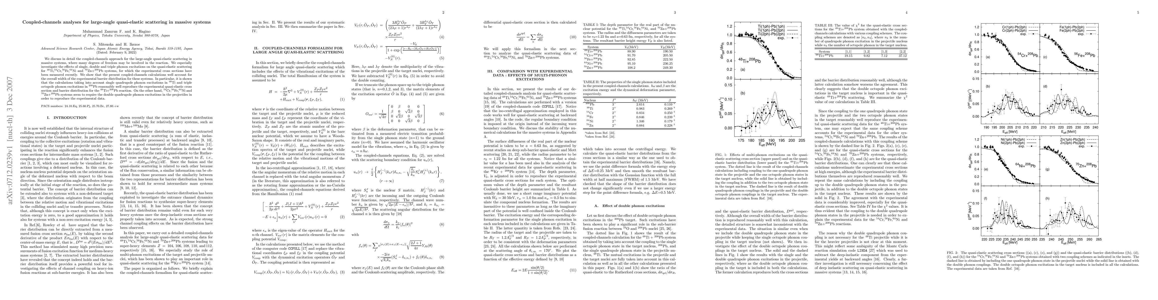 This paper explores the coupled-channels approach for large-angle quasi-elastic scattering in massive systems, focusing on the impact of phonon excitations on scattering cross sections. The study finds that single and triple phonon excitations effectively reproduce experimental data for specific systems, while double quadrupole phonon excitations are necessary for others.